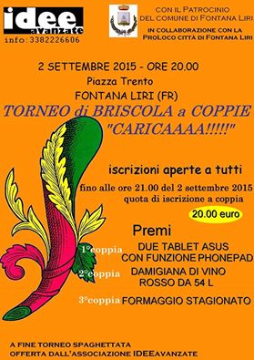 Nei giorni scorsi l’Associazione Idee Avanzate aveva programmato per Mercoledì 2 Settembre un torneo di briscola a coppie in Piazza Trento a Fontana Liri ed aveva avuto l’idea di premiare i vincitori con animali (maiali, agnelli, conigli e criceti). Tamara Partigianoni, rappresentante di Frosinone della Eital, Ente italiano tutela animale e lupo, ha subito contestato questa scelta ed ha chiesto di cambiare i premi. Dopo alcuni equivoci tra l’Associazione animalista e quella organizzatrice, fortunatamente superati, la problematica si è risolta con la modifica del montepremi. Spiega il Presidente dell’Associazione Idee Avanzate Marco Di Rienzo: “Avevamo pensato di proporre un torneo di briscola con in palio gli animali, nel pieno rispetto della legge, riprendendo le tradizioni contadine della nostra zona, dove spesso nei montepremi dei tornei si trovavano animali vivi. Abbiamo accolto l’invito dell’amministrazione comunale (che patrocinava l’evento) a modificare i premi, pur avendo tutte le autorizzazioni necessarie allo svolgimento della manifestazione così come originariamente programmato. Abbiamo scelto di non urtare la suscettibilità degli animalisti”. Il sindaco Gianpio Sarracco (tra l’altro vegetariano dal 2010 e vegano dal 2011) commenta: “Appena siamo venuti a conoscenza della questione ci siamo adoperati per il superamento degli equivoci. La problematica è stata risolta attraverso un pacato confronto. Ringrazio l’Associazione Idee Avanzate per aver accolto il nostro invito a modificare i premi del torneo. Di questa loro sensibilità ne ha preso atto anche l’Eital, diramando un comunicato in merito”.