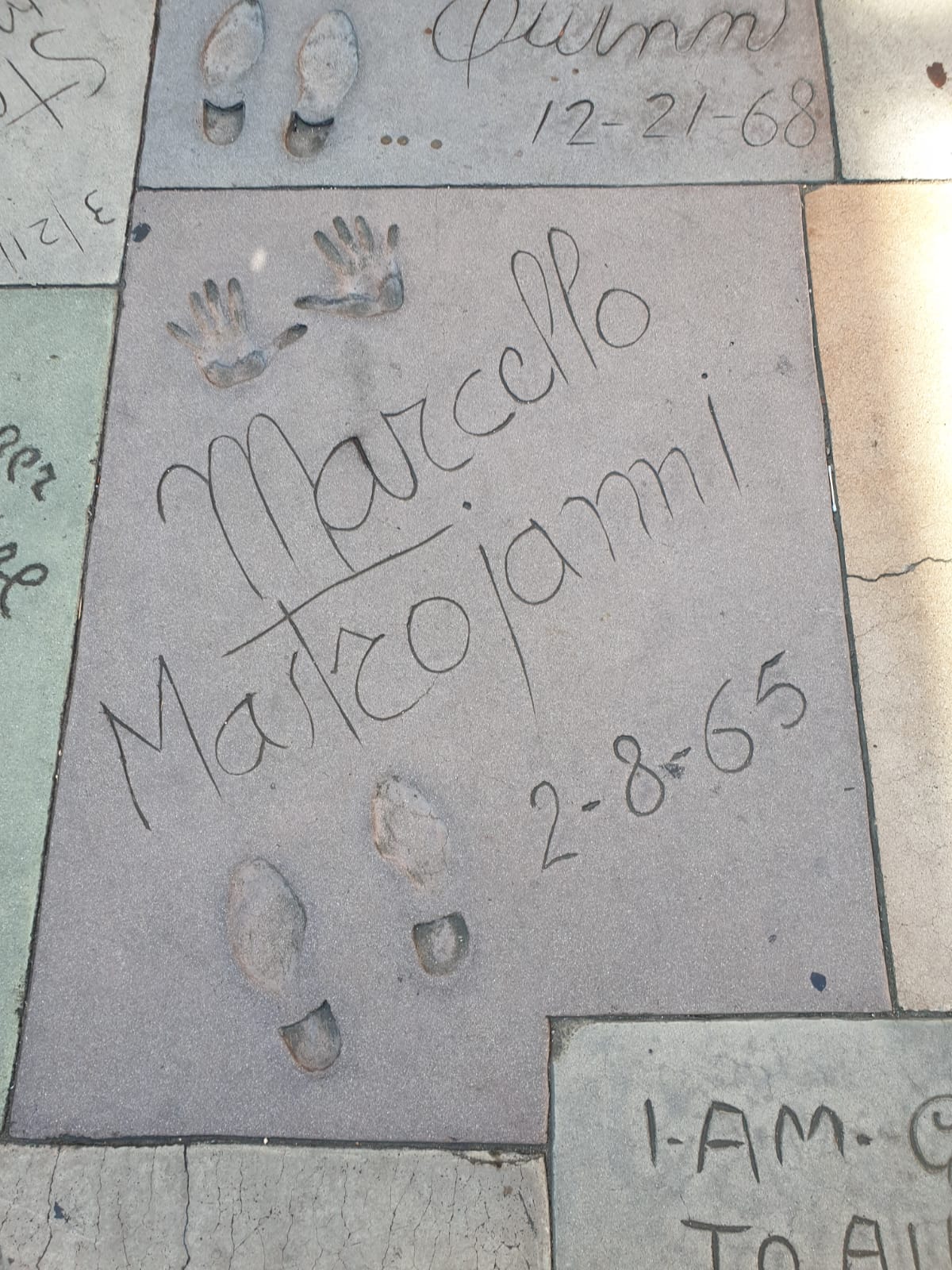 Le impronte di Marcello Mastroianni sul piazzale del Grauman’s Chinese Theatre, Los Angeles
